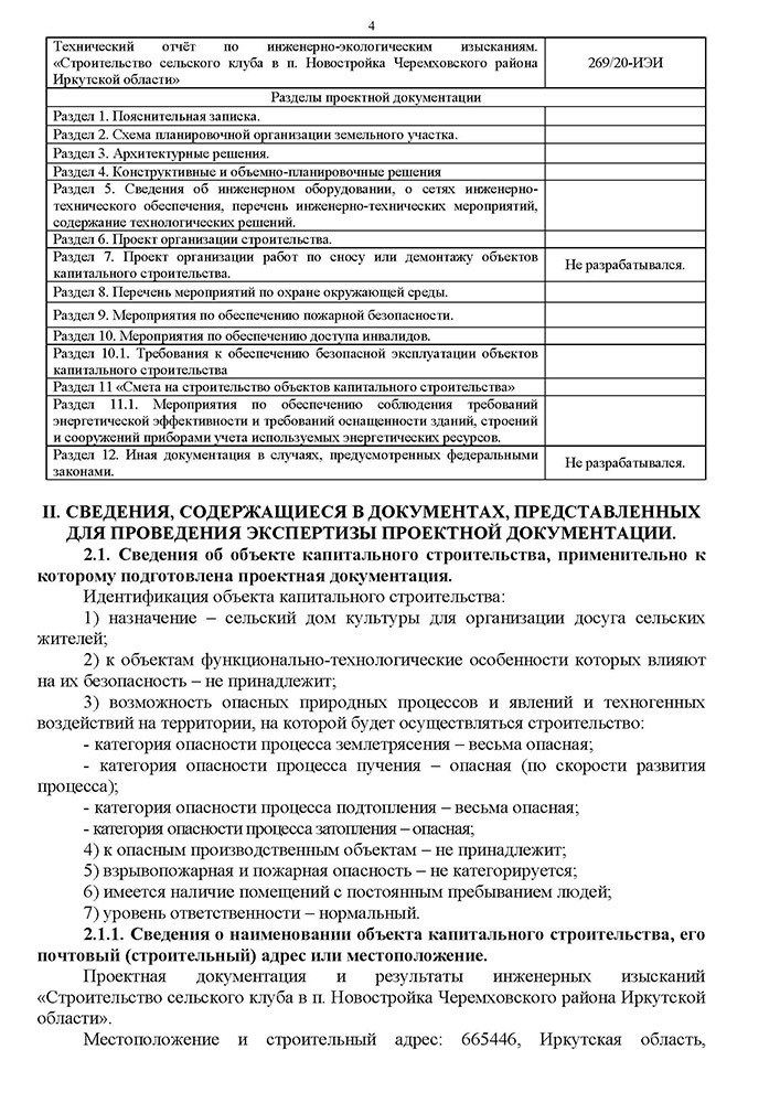 Закончена подготовка проектно-сметной документации и получено положительное заключение государственной экспертной организации на проектно-сметную документацию по объекту: «Строительство сельского клуба в п. Новостройка Черемховского района Иркутской области».
