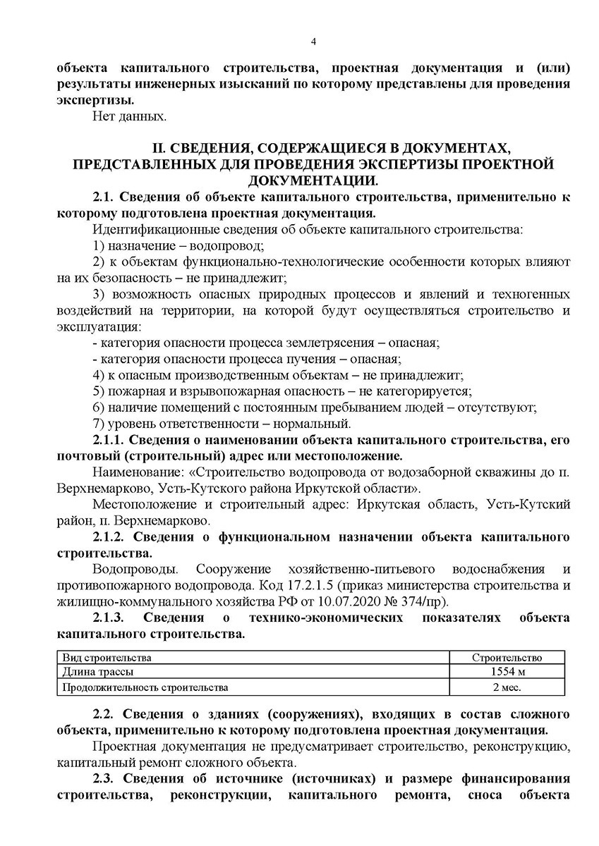 Закончена подготовка проектно-сметной документации и получено положительное заключение государственной экспертной организации на проектно-сметную документацию по объекту: “Строительство водопровода от водозаборной скважины до п. Верхнемарково, Усть-Кутского района Иркутской области”.