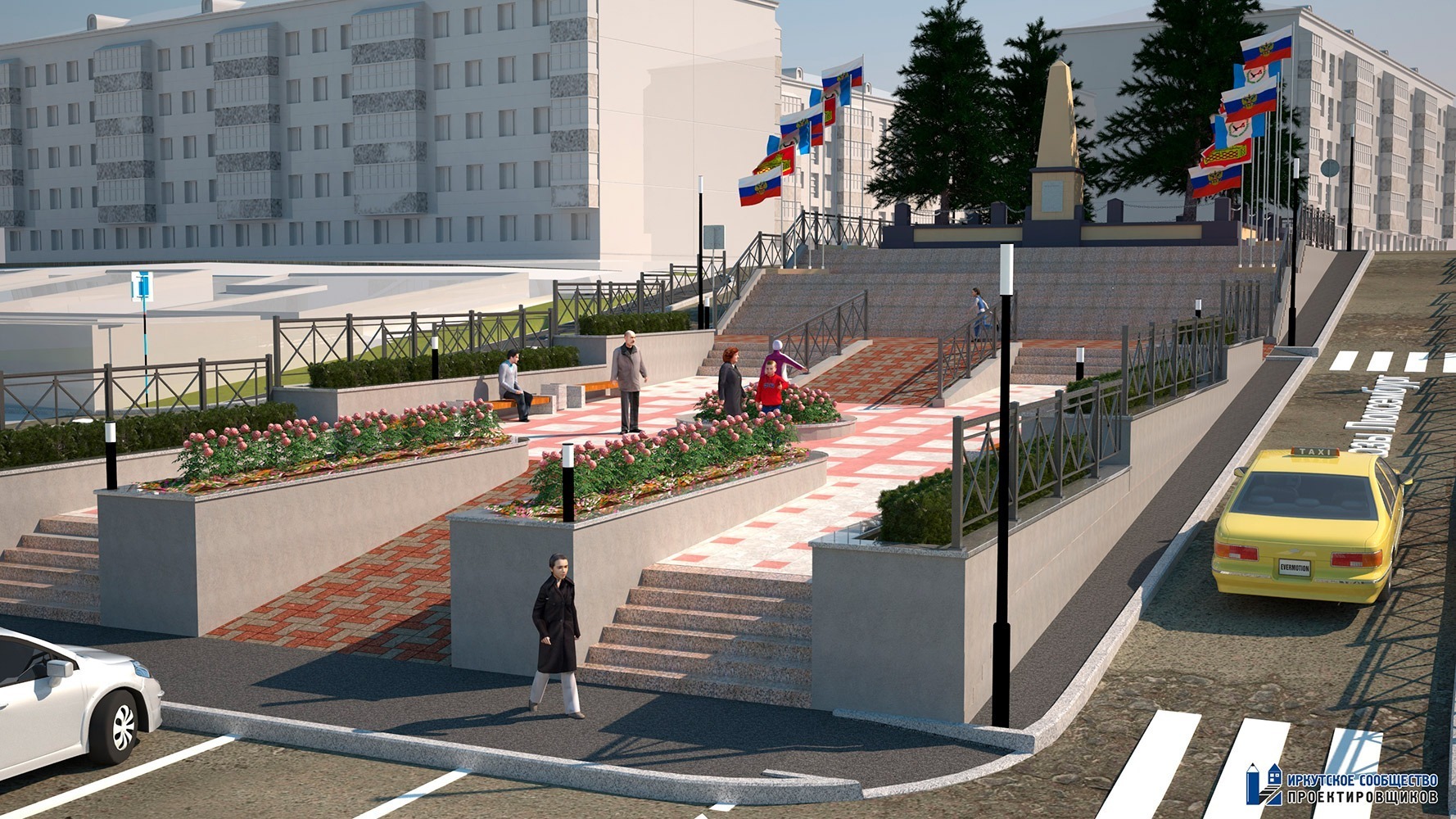 Благоустройство площади перед КДЦ ул. Фонтанная 7А с размещенным на ней памятником воинам ВОВ, в п. Верхнемарково, Иркутской области. Проектными…